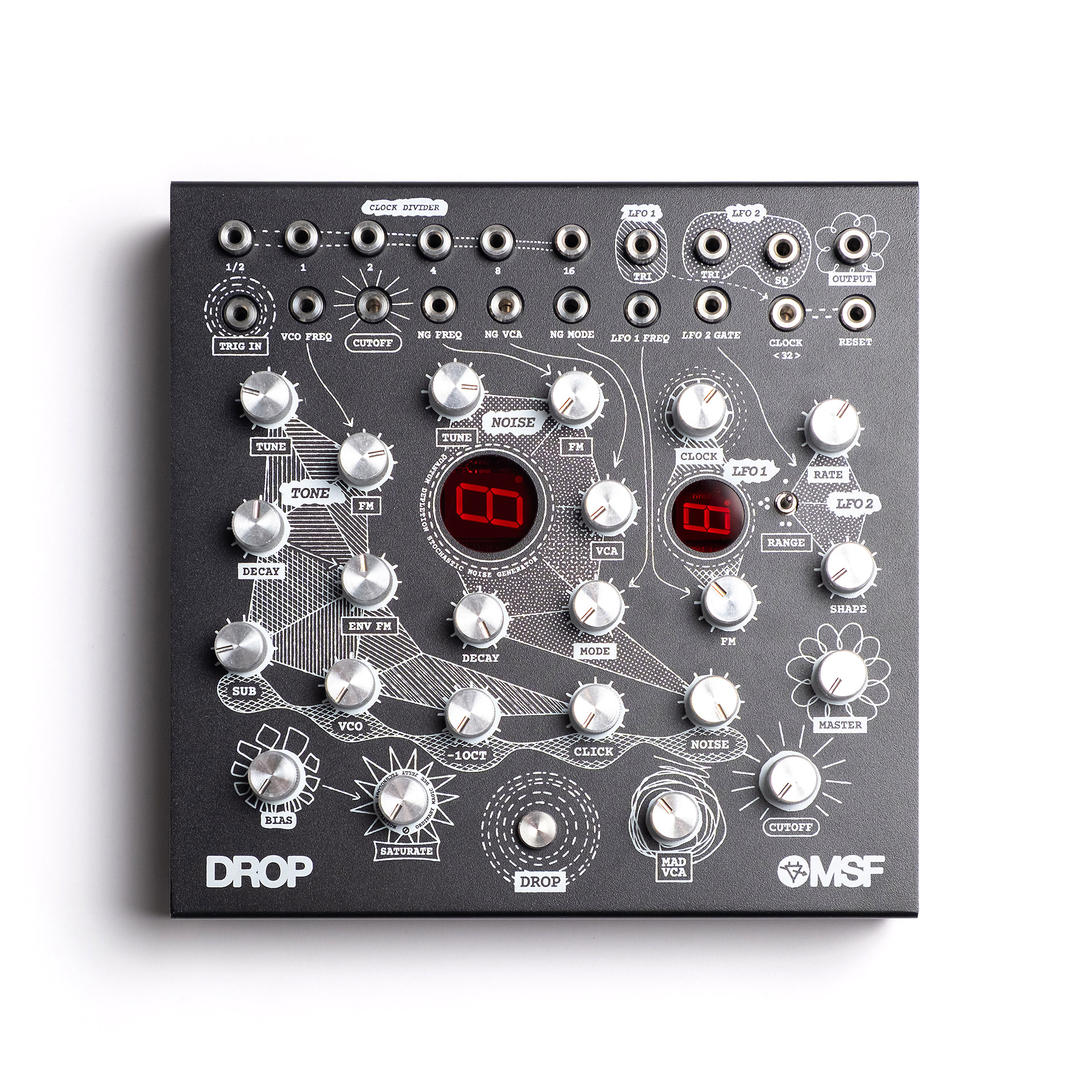 The DROP can be controlled through analog clock signals or MIDI sync. Designed for both live performances and studio use, this instrument offers a wide range of sonic possibilities for musicians looking to experiment with rhythm and sound design.