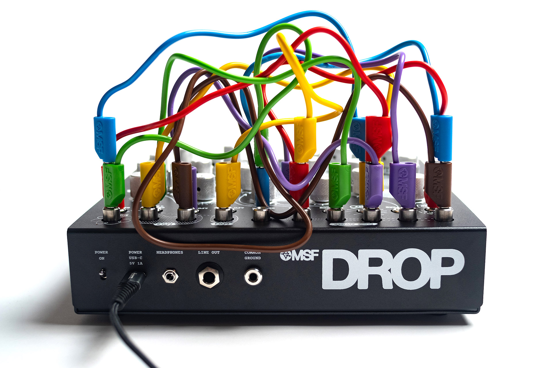 Banana sockets used in The DROP are compatible with any external synths and modules — eurorack or buchla or analog sync — no problem.