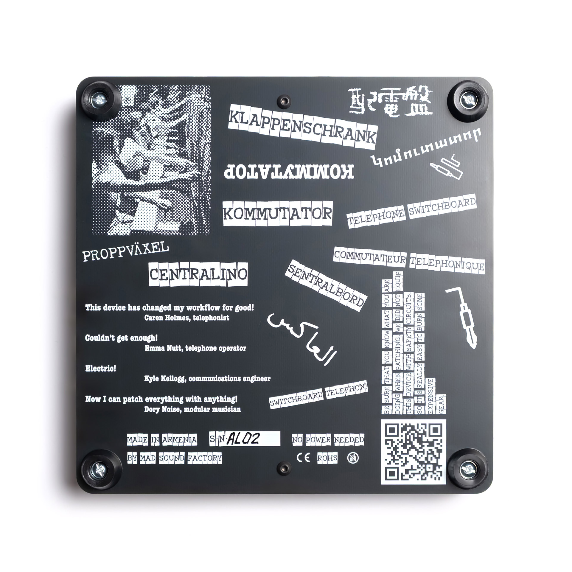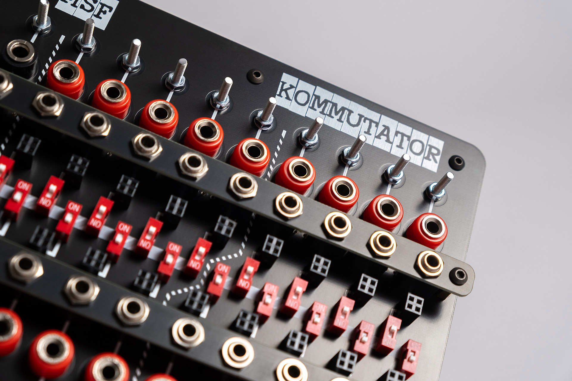 Mad Sound Factory KOMMUTATOR is a desktop patch panel for different modular systems formats. The KOMMUTATOR Lite differs from the usual KOMMUTATOR only in the plastic banana jacks instead of the metal ones and screws instead of pins for connecting SOMA gear and test equimpent. Other functions are exactly same.